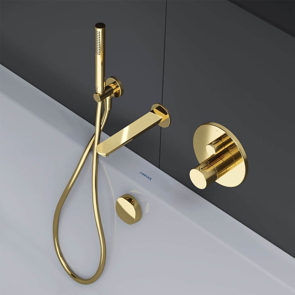 Add a touch of elegance to your shower with the Duravit wall-mounted hand shower outlet with holder in a luxurious polished gold finish.
