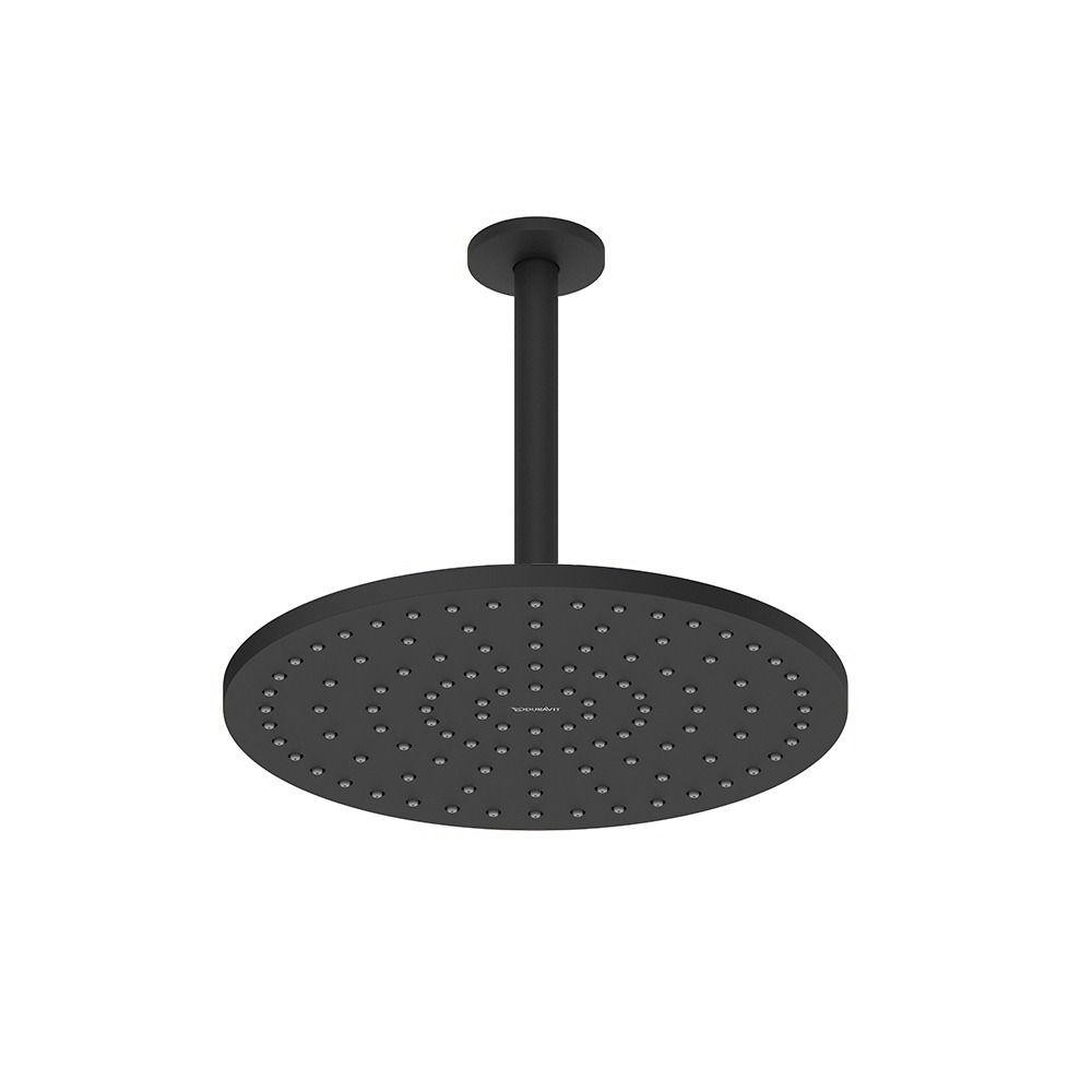 Duravit MinusFlow 1-jet Ceiling Mount Round Shower Head with shower arm Head Shower 25cm Ø - Matt Black Showers