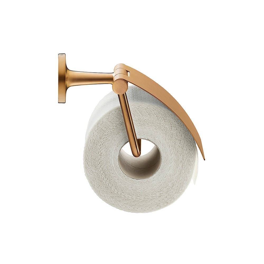 Duravit Starck T toilet paper holder with cover in brushed bronze color with self-adhesive or drilling fixing options, designed by Philippe Starck. It is a stylish and durable bathroom accessory that ensures hygiene and convenience. Optional expert installation is available.