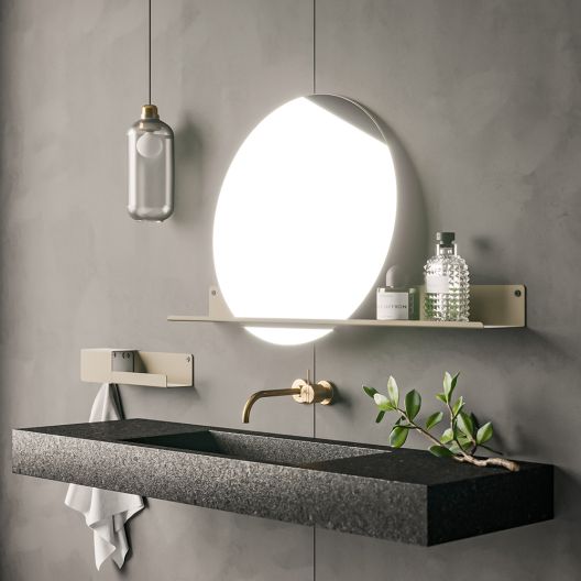 Fink London Round Mirror with Steel Shelf shelf 60 cm (W) / mirror 37 cm (W) Sand Grey Bathroom Mirrors