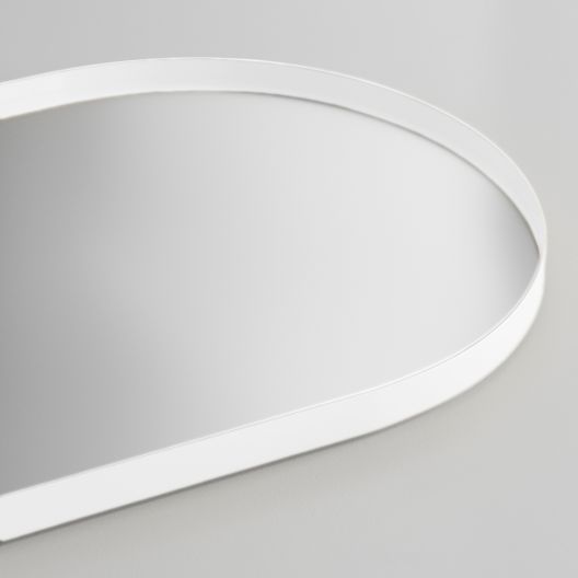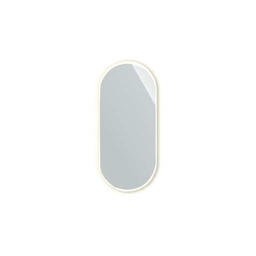 Elevate your home decor with the European handmade H.O.M Akasaka luxury elliptical wall mirror with warm white LED lighting from the Home of Mirrors (H.O.M). This decorative 40 x 90 cm mirror, complete with a white steel frame, is perfect for elegant wall decor. Optional expert installation is available.