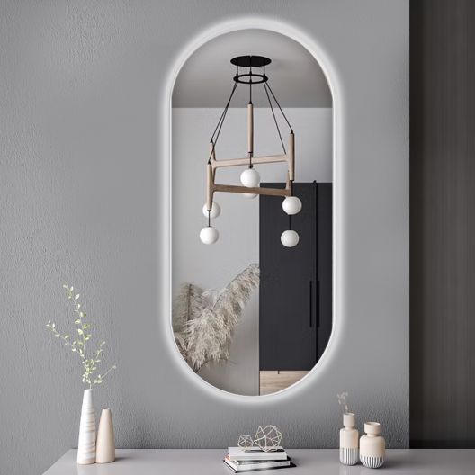 Handcrafted Oval Wall Mirror with LED Light 40x90 cm, White Steel Frame Bathroom Mirrors