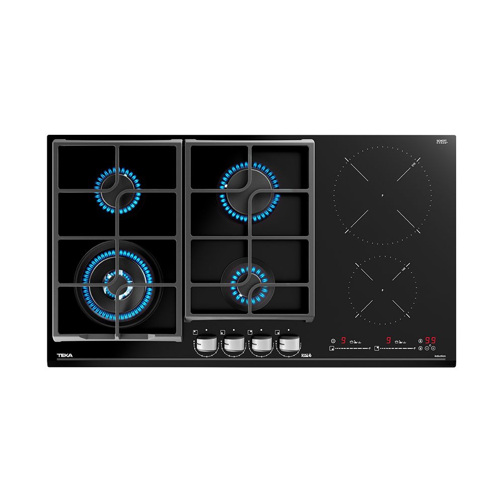 - The TEKA JZC Built-in Gas + Induction Hob offers the best of both worlds, seamlessly integrating traditional gas cooking with modern induction technology in a single, elegant 90cm appliance.