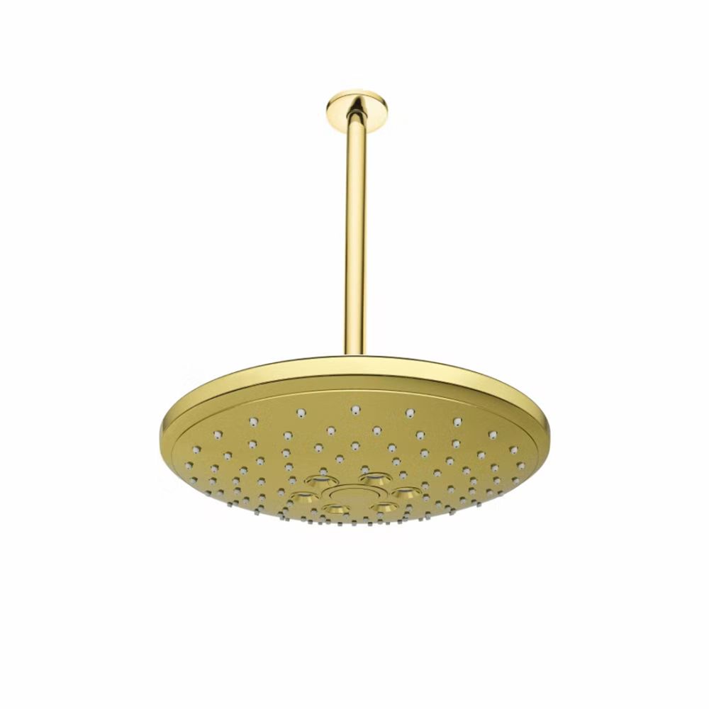 VitrA Plastic Ceiling Mounted Round Rain Head Shower With Arm Head Shower 25cm Ø - Shiny Gold Showers