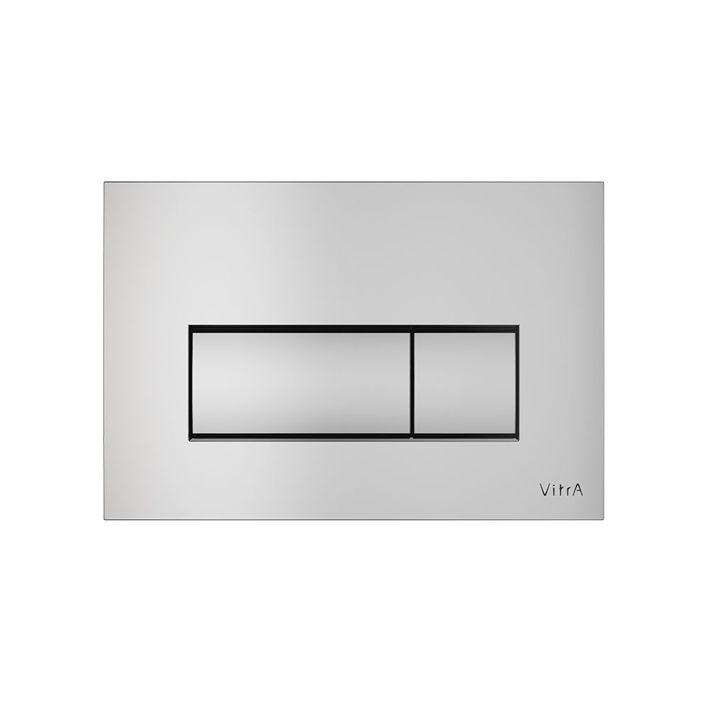Enhance your bathroom with the sleek and modern design of the VitrA Root Square flush wall plate in chrome color. Easy-to-clean and stylish, it ensures seamless flush operation and durability.