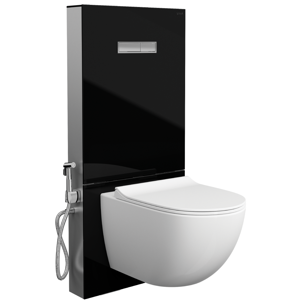 VitrA Full Set Glass WC Frame with Dual Flush Cistern & Trigger Spray 114(H) x 51.8(W) x 12(D) cm - Matt Black Flushing Cabinet
