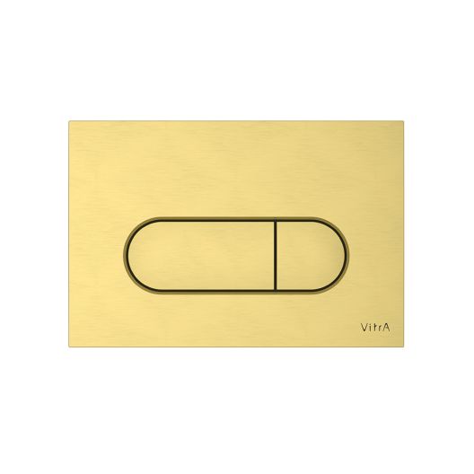 VitrA Root Round Flush Plate - Brushed Gold color: upgrade your bathroom with this sleek, modern design. Easy-to-clean and stylish, it ensures seamless flush operation and durability.